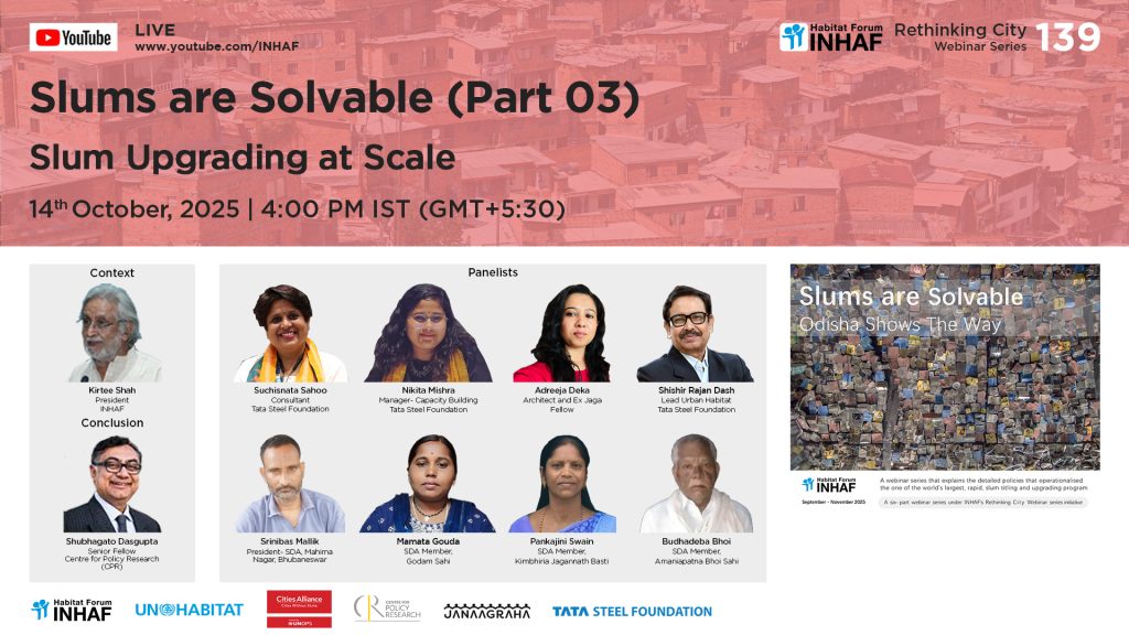 Slums are Solvable Webinar Series Recognising the scaling potential of the Jaga Mission and its excellency in promoting the coordination of key stakeholders in the development and distribution of resources, knowledge sharing, and joint implementation. The agencies included are INHAF, Tata Steel Foundation, the Centre for Policy Research, and Janaagraha Centre for Citizenship & Democracy, […]